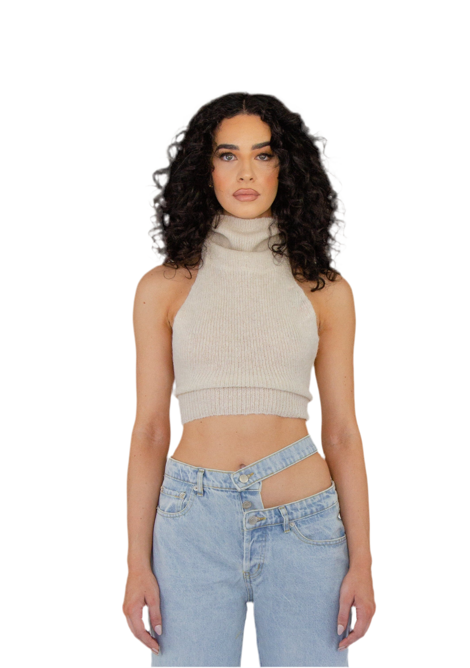 Cashmere material back tie super stretch cropped sweater